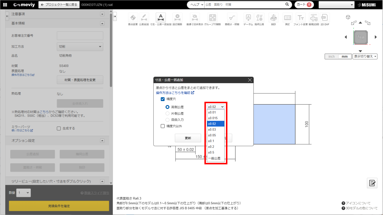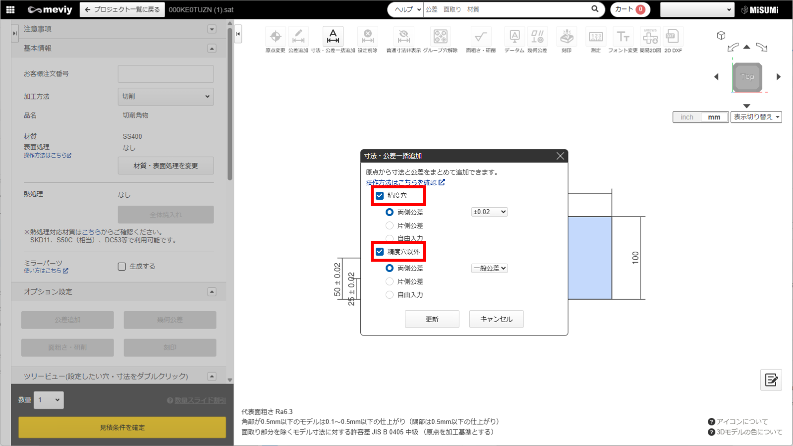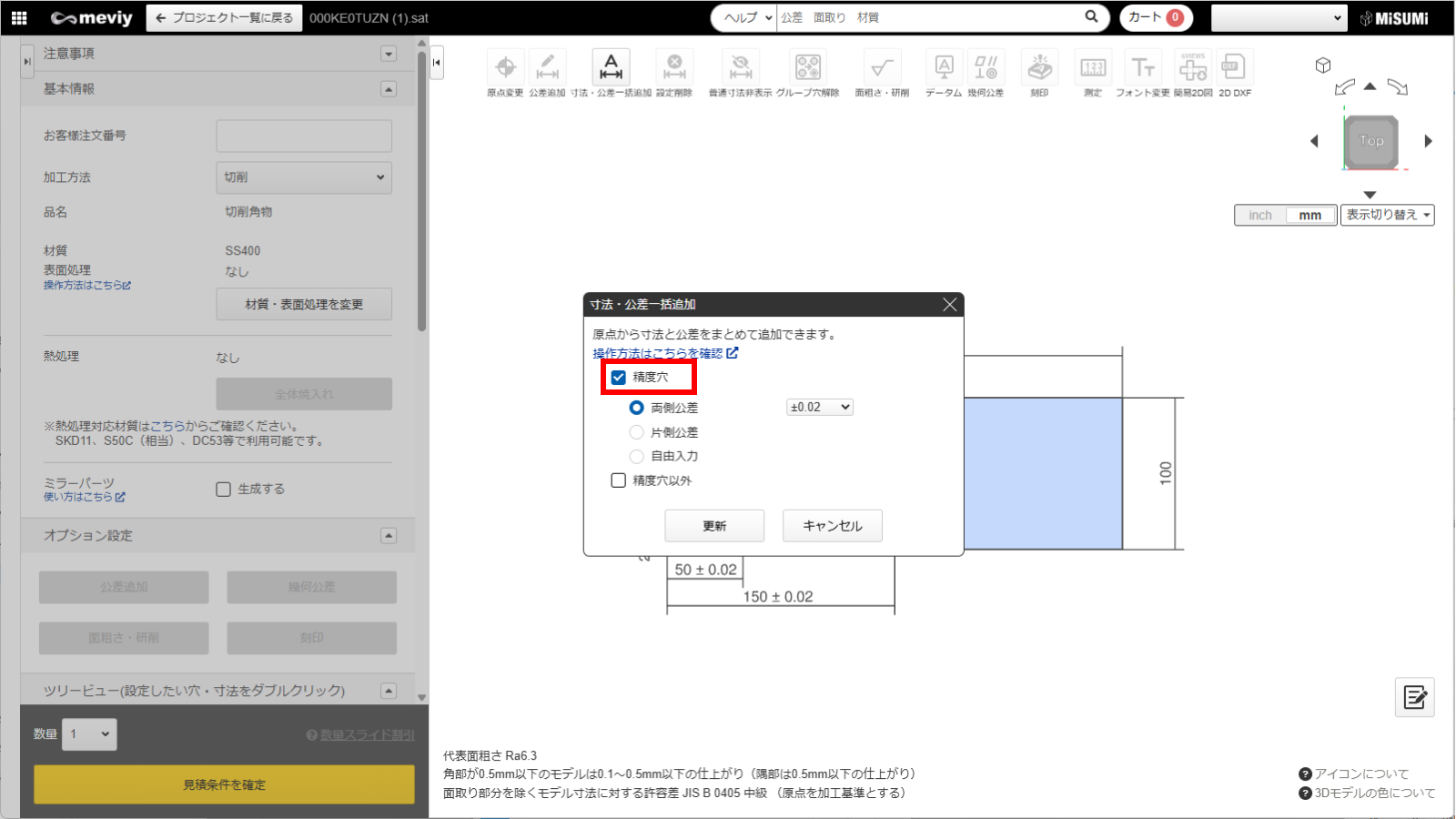 選択可能な穴種は、「精度穴」もしくは「精度穴以外」です。