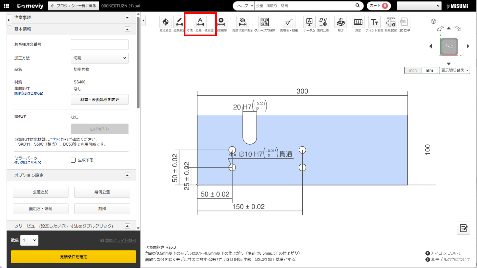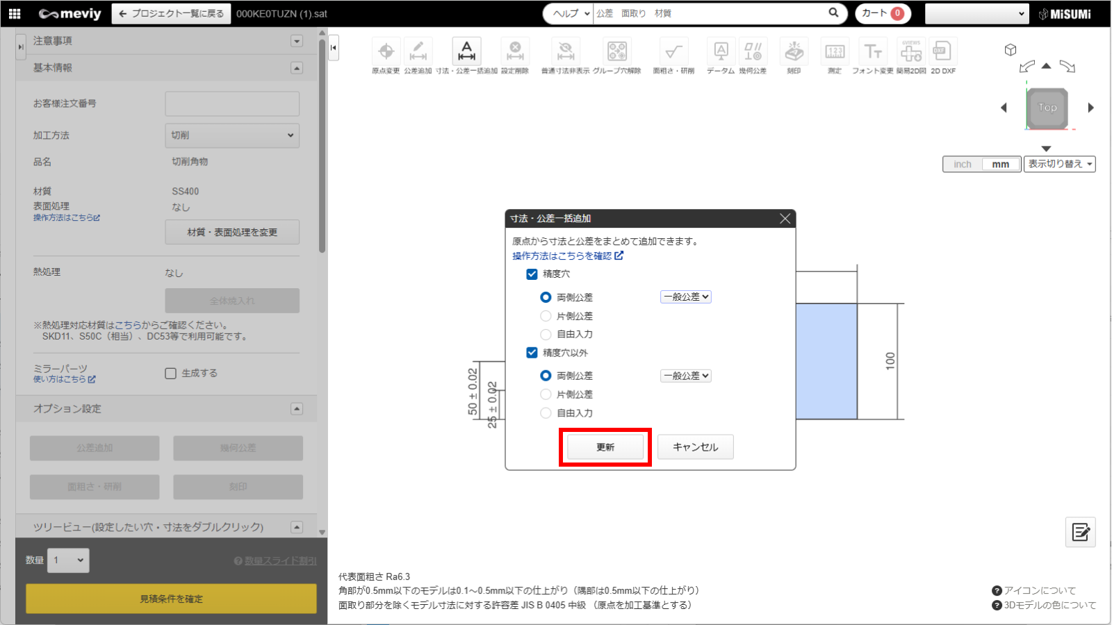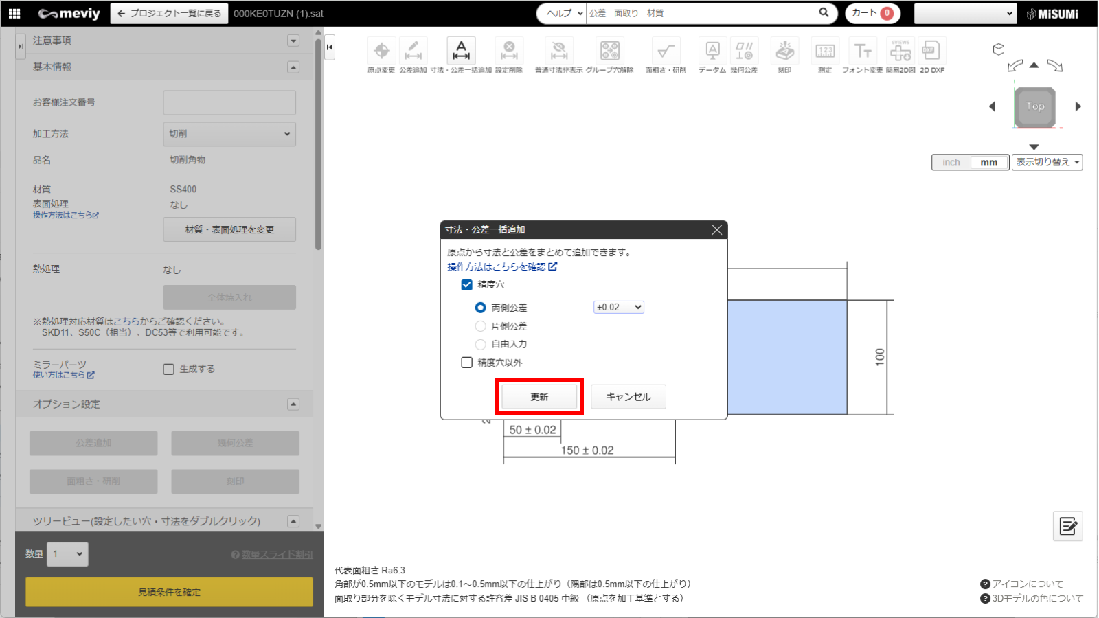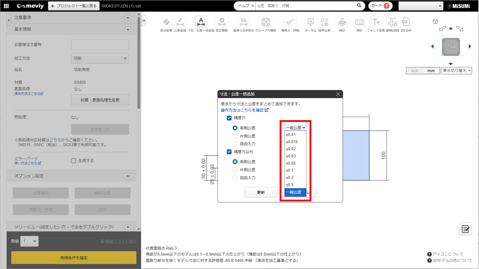 選択可能な穴種は、「精度穴」もしくは「精度穴以外」です。