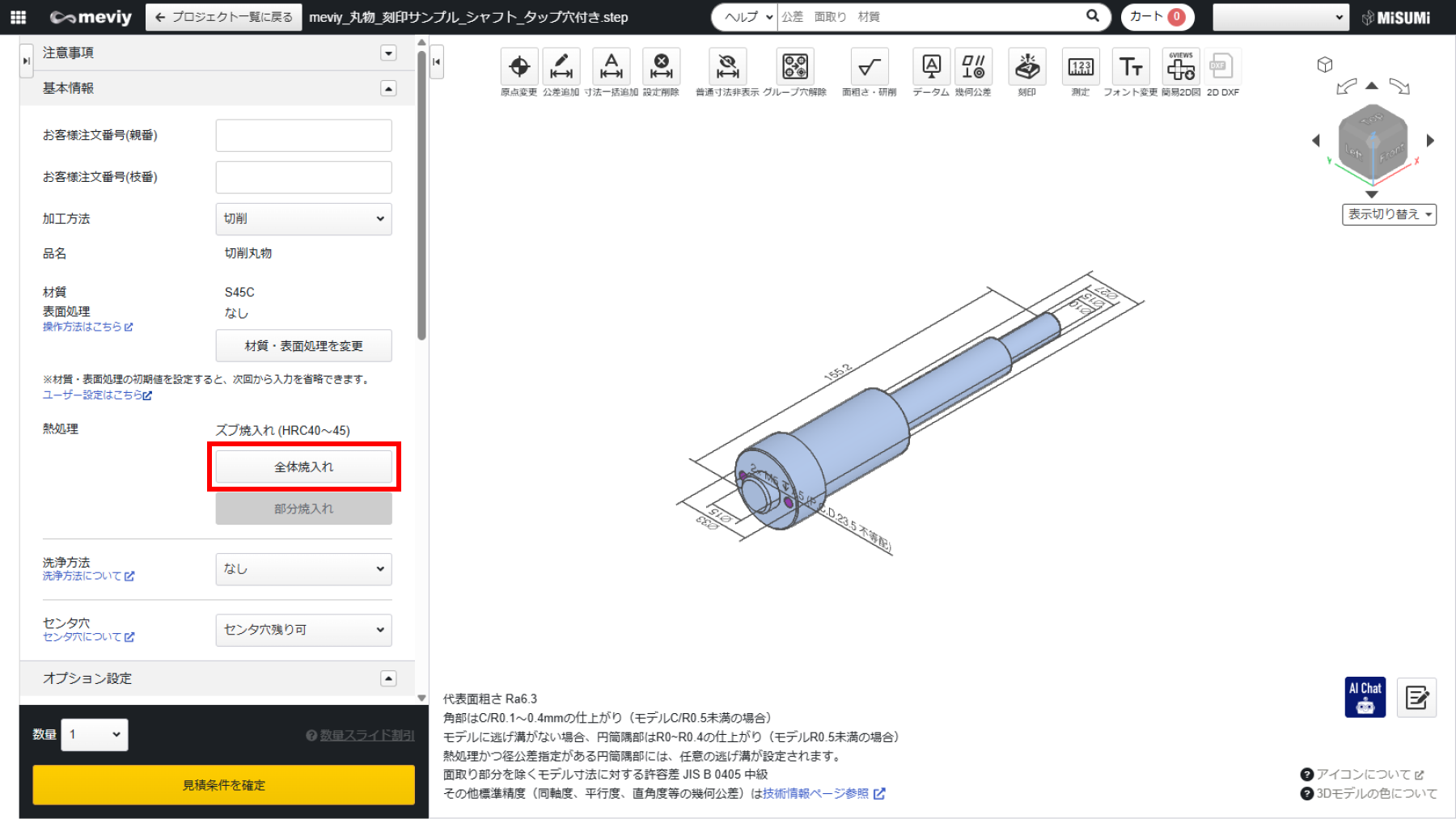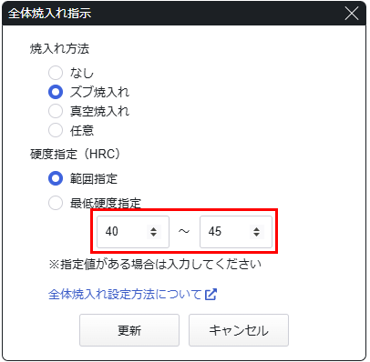 熱処理(全体焼入れ・部分焼入れ)を設定する