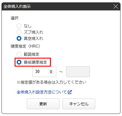 熱処理を設定する際に、最低硬度を指定できるようになりました