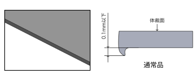 0.1㎜以上のバリ・カエリなきこと | バリ・カエリをR0.1相当で仕上げ | |